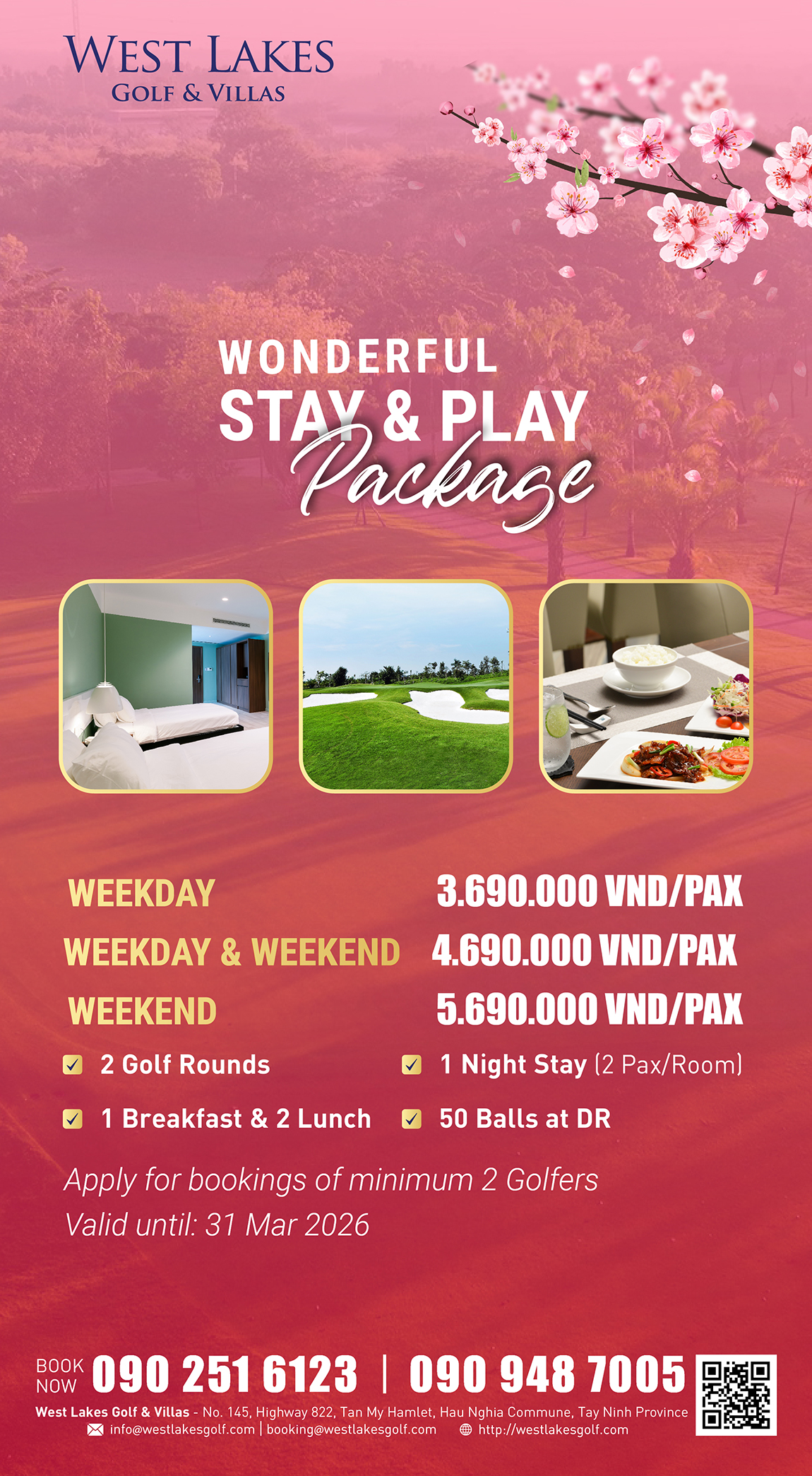 Tận hưởng kỳ nghỉ tuyệt vời kết hợp trải nghiệm golf đẳng cấp tại West Lakes Golf & Villas – nơi mang đến cho golfer sự thư giãn trọn vẹn và những cú swing đầy cảm hứng!
