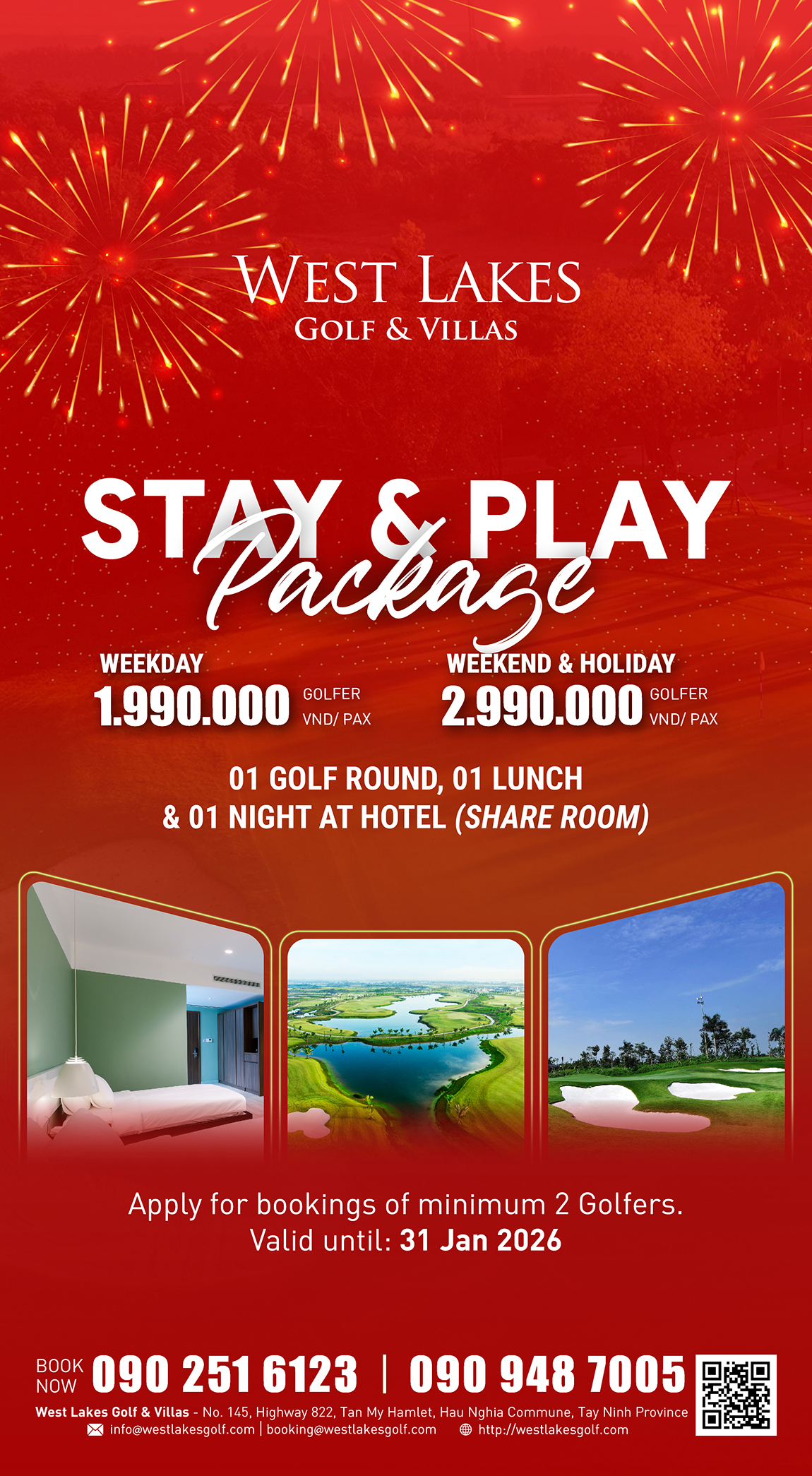 Trải nghiệm kỳ nghỉ trọn vẹn cùng người thương và những người bạn tại West Lakes Golf & Villas – tất cả gói gọn trong một mức giá không thể tốt hơn!